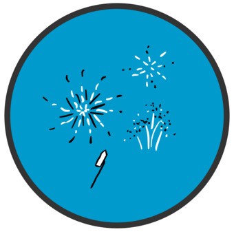 Das Bild gehört zur Serie "Icons 4" und ist ein mögliches Symbolbild für Abschluss, Feier, Pyro, Abend, Nacht, Ende, Party, neu, Silvester, Jubilaeum, Funken. Das Bild ist unter CC0 lizenziert und kann somit frei verwendet werden. Es ist neben weiteren Bildern auch hier zu finden: https://bildungselemente.de/de/projekte/icons-symbole-bilddateien