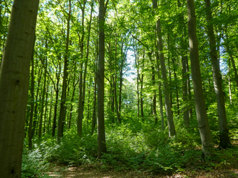 Das Bild gehört zur Serie „Lebenslauf einer Buche“. Es zeigt einen Waldabschnitt mit jungen Buchen. Es gelten die Nutzungsbedingungen der Mediothek und Pixiothek.