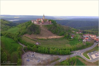 Das Bild gehört zur Serie „Luftbilder Leuchtenburg“. Es zeigt die Leuchtenburg bei Seitenroda, aufgenommen im April 2019.