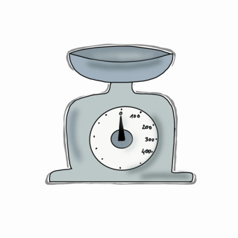 Das Bild zeigt eine gezeichnete Küchenwaage. Das Bild ist unter CC0 lizenziert und kann somit frei verwendet werden.
