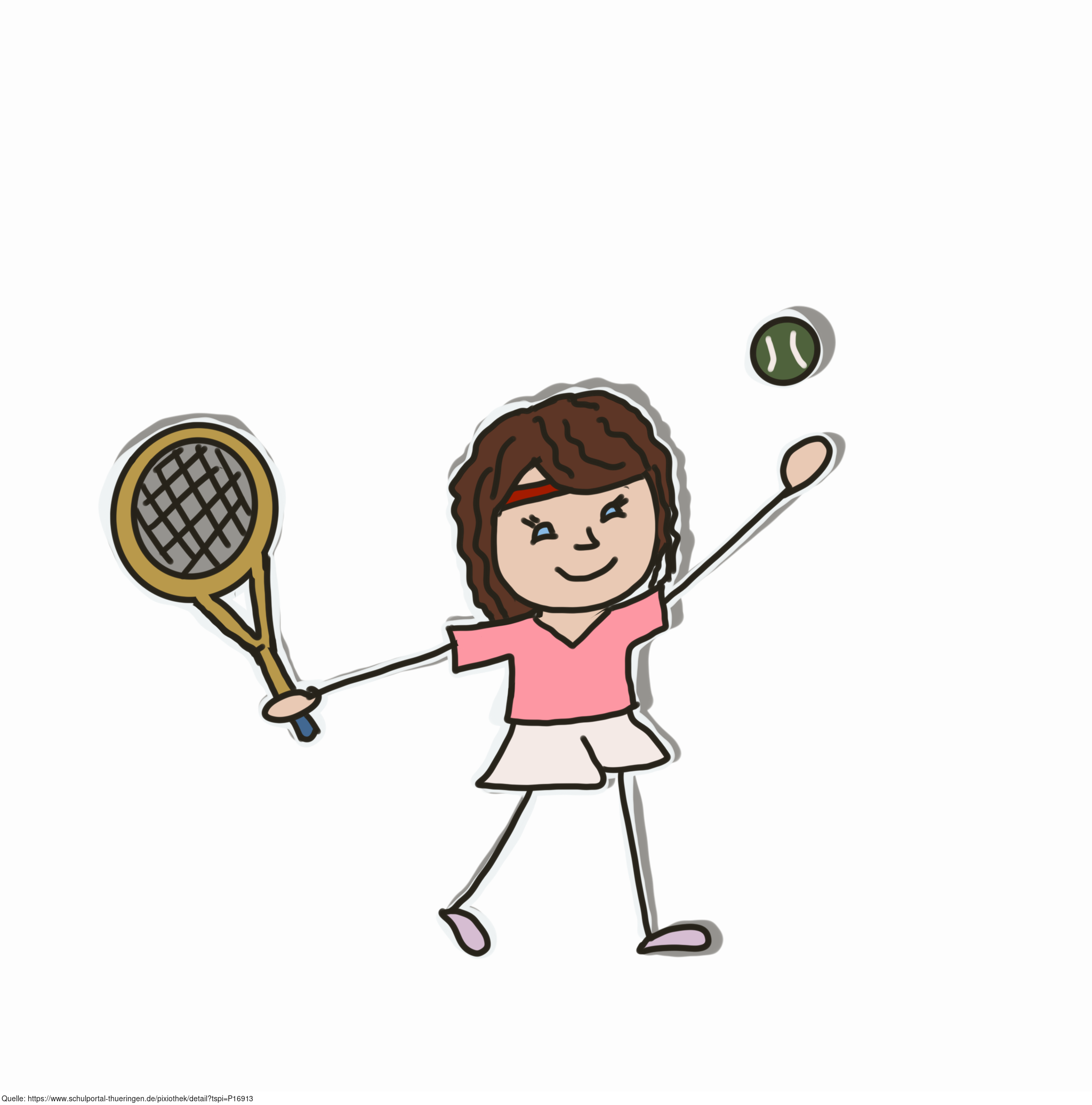 Das Bild zeigt ein gezeichnetes Kind, welches Tennis spielt. Das Bild ist unter CC0 lizenziert und kann somit frei verwendet werden.