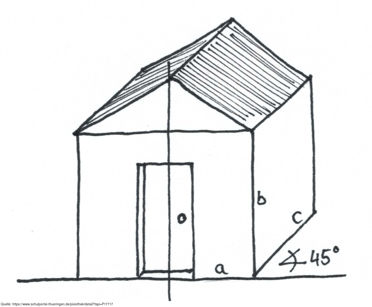 Das Bild gehört zur Serie "Projektionsarten". Es zeigt die Kavalierprojektion am Beispiel eines Gebäudes. Es gelten die Nutzungsbedingungen der Mediothek und Pixiothek.