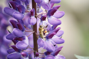 Honigbiene (Flugbiene) auf der Blüte einer Lupine