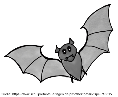 Das Bild zeigt eine gezeichnete Fledermaus. Das Bild ist unter CC0 lizenziert und kann somit frei verwendet werden. Es ist neben weiteren Bildern auch hier zu finden: https://moodlelab.moodleschule.de/