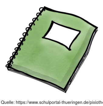 Das Bild zeigt ein gezeichnetes grünes Heft. Das Bild ist unter CC0 lizenziert und kann somit frei verwendet werden. Es ist neben weiteren Bildern auch hier zu finden: https://moodlelab.moodleschule.de/