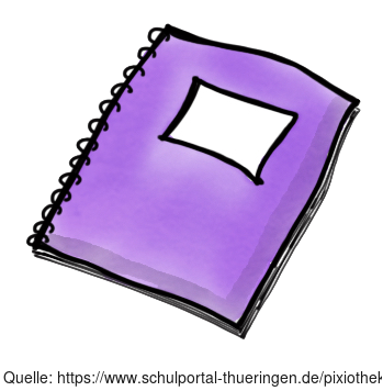 Das Bild zeigt ein gezeichnetes violettes Heft. Das Bild ist unter CC0 lizenziert und kann somit frei verwendet werden. Es ist neben weiteren Bildern auch hier zu finden: https://moodlelab.moodleschule.de/