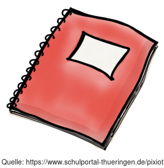 Das Bild zeigt ein gezeichnetes rotes Heft. Das Bild ist unter CC0 lizenziert und kann somit frei verwendet werden. Es ist neben weiteren Bildern auch hier zu finden: https://moodlelab.moodleschule.de/