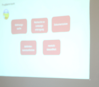 Das Bild ist Teil der Serie „Veranstaltungen“. Es zeigt eine Präsentation, die mittels Beamer an eine Wand projeziert wird.. Es gelten die Nutzungsbedingungen der Mediothek und Pixiothek.