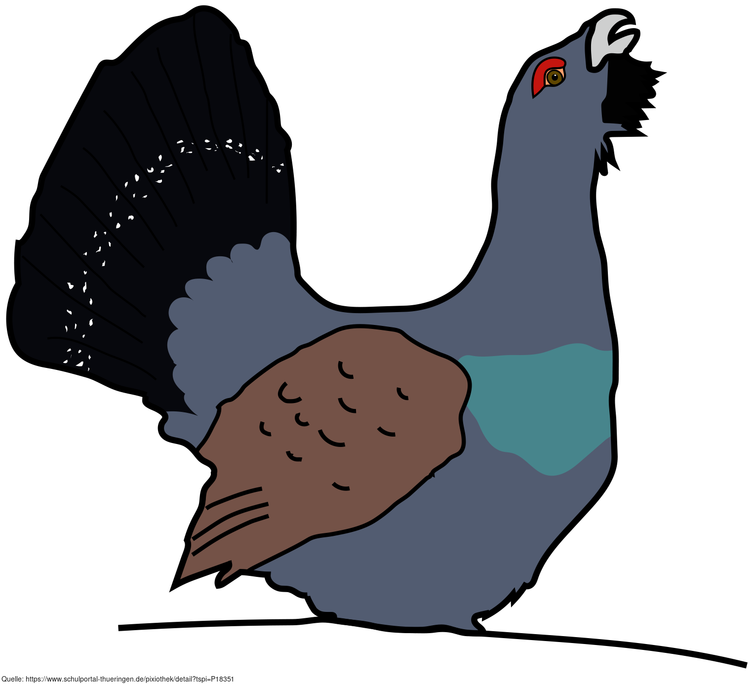 Das Bild zeigt ein gezeichnetes Auerhuhn. Es stammt aus dem Projekt "Didactica Bavaria Bohemia" - Materialpakete daraus siehe "Verwandte Medien (Auswahl)". Das Bild ist unter CC0 lizenziert und kann somit frei verwendet werden.