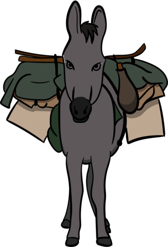 Das Bild zeigt einen gezeichneten Esel bzw. Lastesel. Es stammt aus dem Projekt "Didactica Bavaria Bohemia" - Materialpakete daraus siehe "Verwandte Medien (Auswahl)". Das Bild ist unter CC0 lizenziert und kann somit frei verwendet werden.