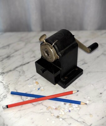 Das Foto zeigt einen historischen Bleistiftspitzer.
