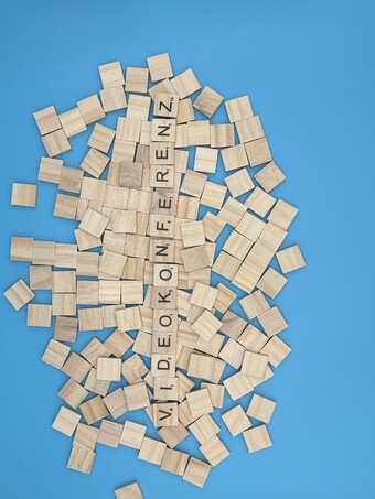 Aus Buchstaben wurde das Wort "Videokonferenz" gelegt. Es gelten die Nutzungsbedingungen der Mediothek und Pixiothek.
