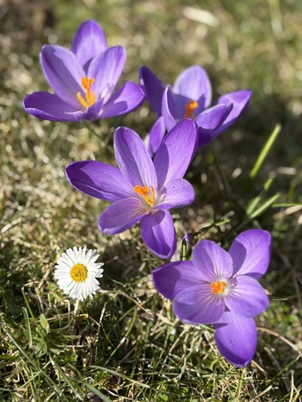 Krokuss und Gänseblümchen