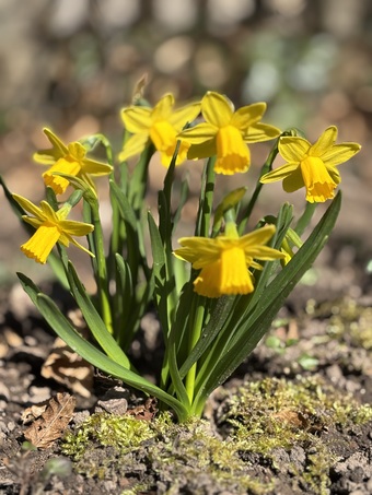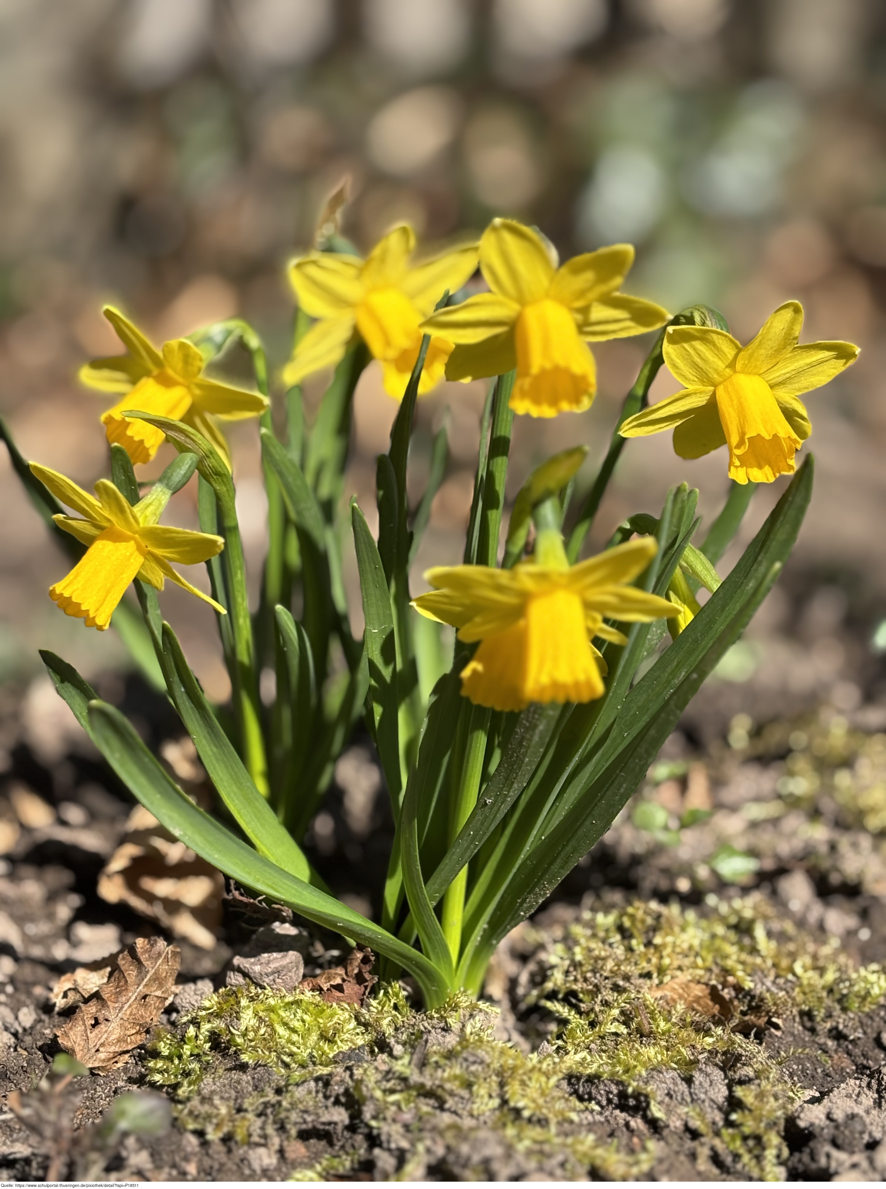 Das Bild zeigt einige Mini-Narzissen. Sie gehört zur Familien der Hahnenfußgewächse und ist auf der Nordhalbkugel weit verbreitet. Es gelten die Nutzungsbedingungen der Mediothek und Pixiothek.