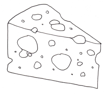 Das Bild zeigt ein gezeichnetes Stück Käse (s/w). Es gehört zur Serie "Ernährungspyramide zum Basteln und Gestalten" und findet u.a. im gleichnamigen Lernobjekt unter https://www.schulportal-thueringen.de/web/guest/media/detail?tspi=18517 Verwendung. Es gelten die Nutzungsbedingungen der Mediothek und Pixiothek.