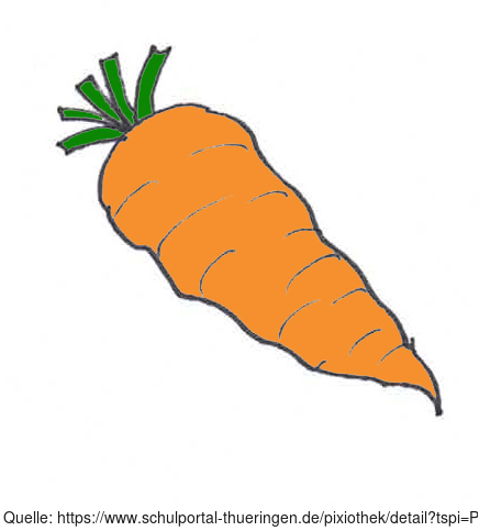 Das Bild zeigt eine gezeichnete Möhre (farbig). Es gehört zur Serie "Ernährungspyramide zum Basteln und Gestalten" und findet u.a. im gleichnamigen Lernobjekt unter https://www.schulportal-thueringen.de/web/guest/media/detail?tspi=18517 Verwendung. Es gelten die Nutzungsbedingungen der Mediothek und Pixiothek.