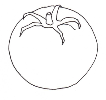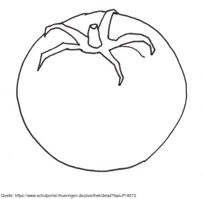 Das Bild zeigt eine gezeichnete Tomate (s/w). Es gehört zur Serie "Ernährungspyramide zum Basteln und Gestalten" und findet u.a. im gleichnamigen Lernobjekt unter https://www.schulportal-thueringen.de/web/guest/media/detail?tspi=18517 Verwendung. Es gelten die Nutzungsbedingungen der Mediothek und Pixiothek.