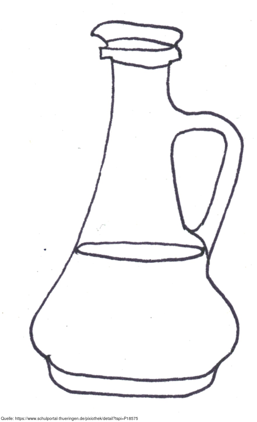 Das Bild zeigt eine gezeichnete Karaffe mit einer Flüssigkeit (s/w). Es gehört zur Serie "Ernährungspyramide zum Basteln und Gestalten" und findet u.a. im gleichnamigen Lernobjekt unter https://www.schulportal-thueringen.de/web/guest/media/detail?tspi=18517 Verwendung. Es gelten die Nutzungsbedingungen der Mediothek und Pixiothek.