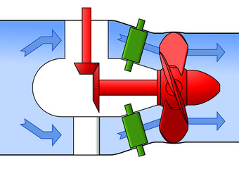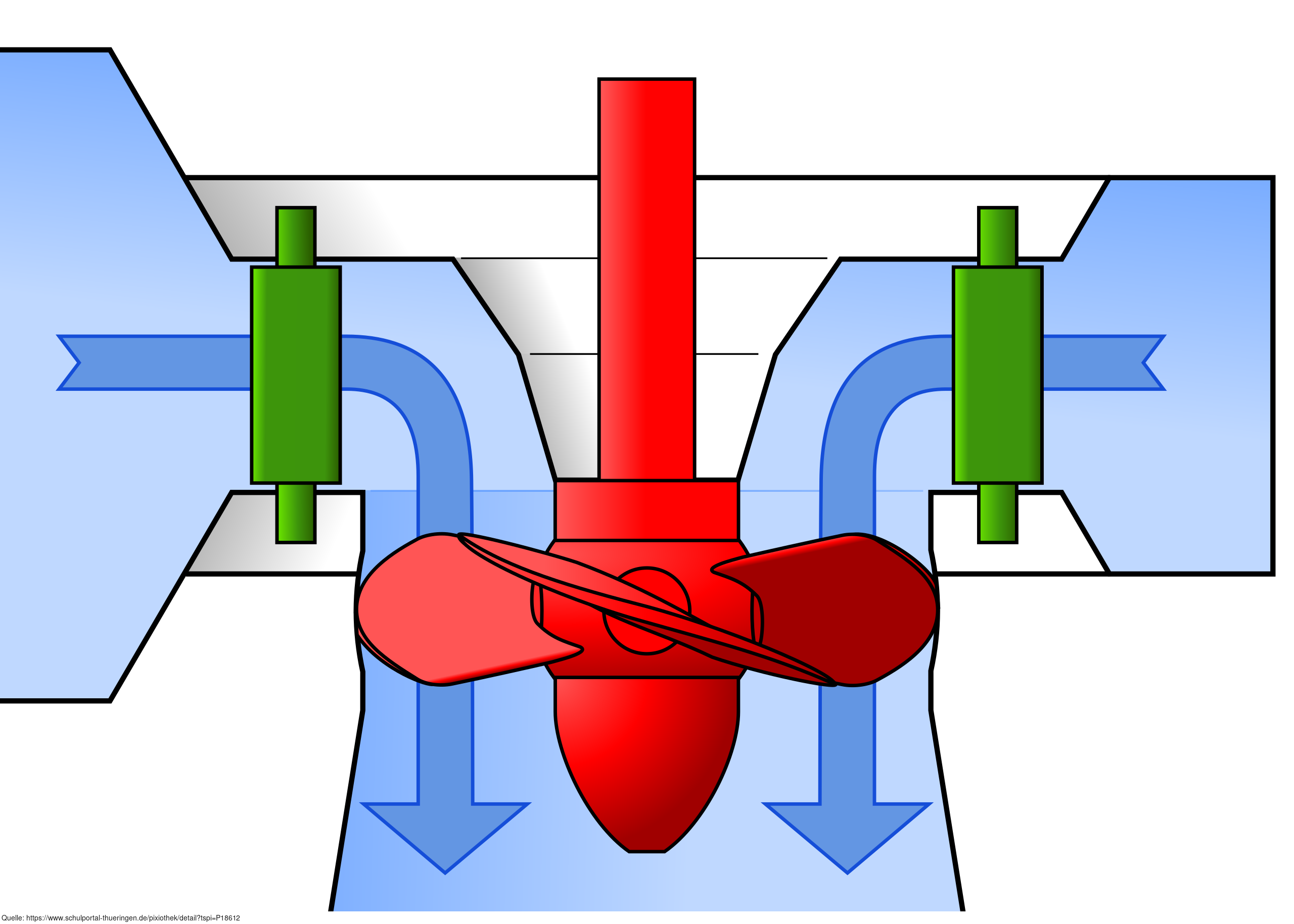 Das Bild gehört zur Serie "Turbinenarten". Es zeigt die Skizze einer Getriebe-Rohrturbine (eine Variante der Kaplan-Turbine). Das Bild ist unter CC0 lizenziert und kann somit frei verwendet werden.