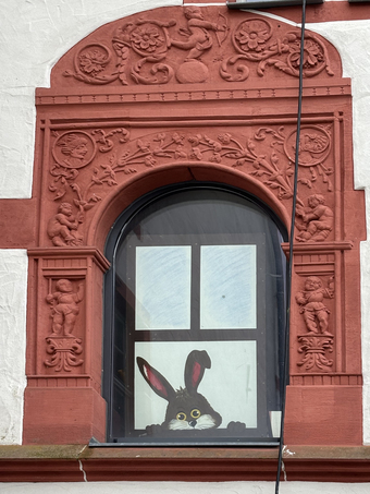 Das Bild entstand auf Osterburg in Weida. Die Burg befindet sich auf einem Berg im Zentrum der Stadt und wurde im 12. Jh. als romanische Befestigungsanlage in strategisch günstiger Lage errichtet. Ihr Name leitet sich vom lateinischen Neuostland ab, den Gebieten Ostthüringens, die auch heute noch als Osterland bezeichnet werden. Die Namensverbindung dient als Anlass, das alljährliche Osterfest hier in besonderer Weise zu feiern.