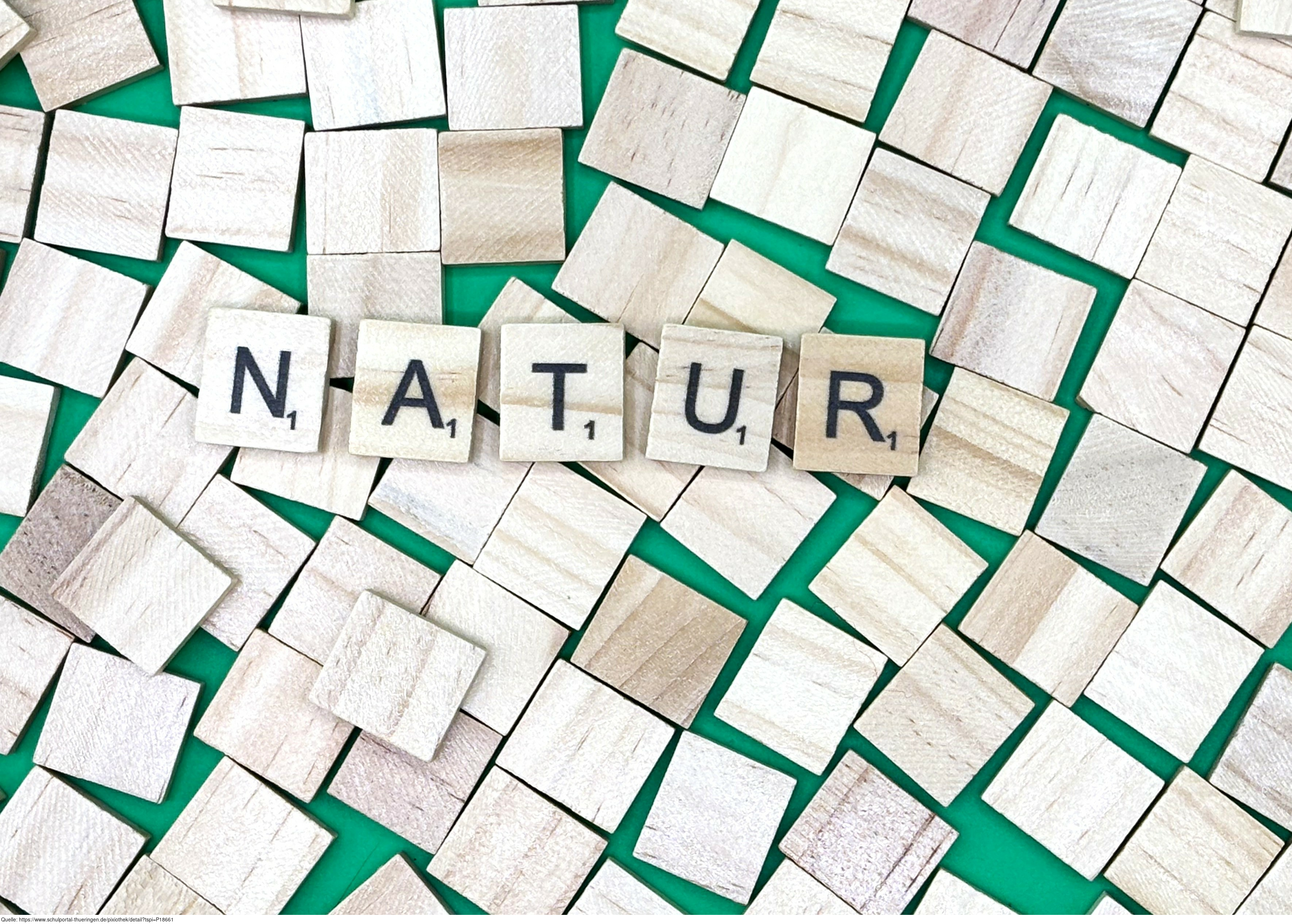 Aus Buchstaben wurde der Begriff "Natur" gelegt. Es gelten die Nutzungsbedingungen der Mediothek und Pixiothek.