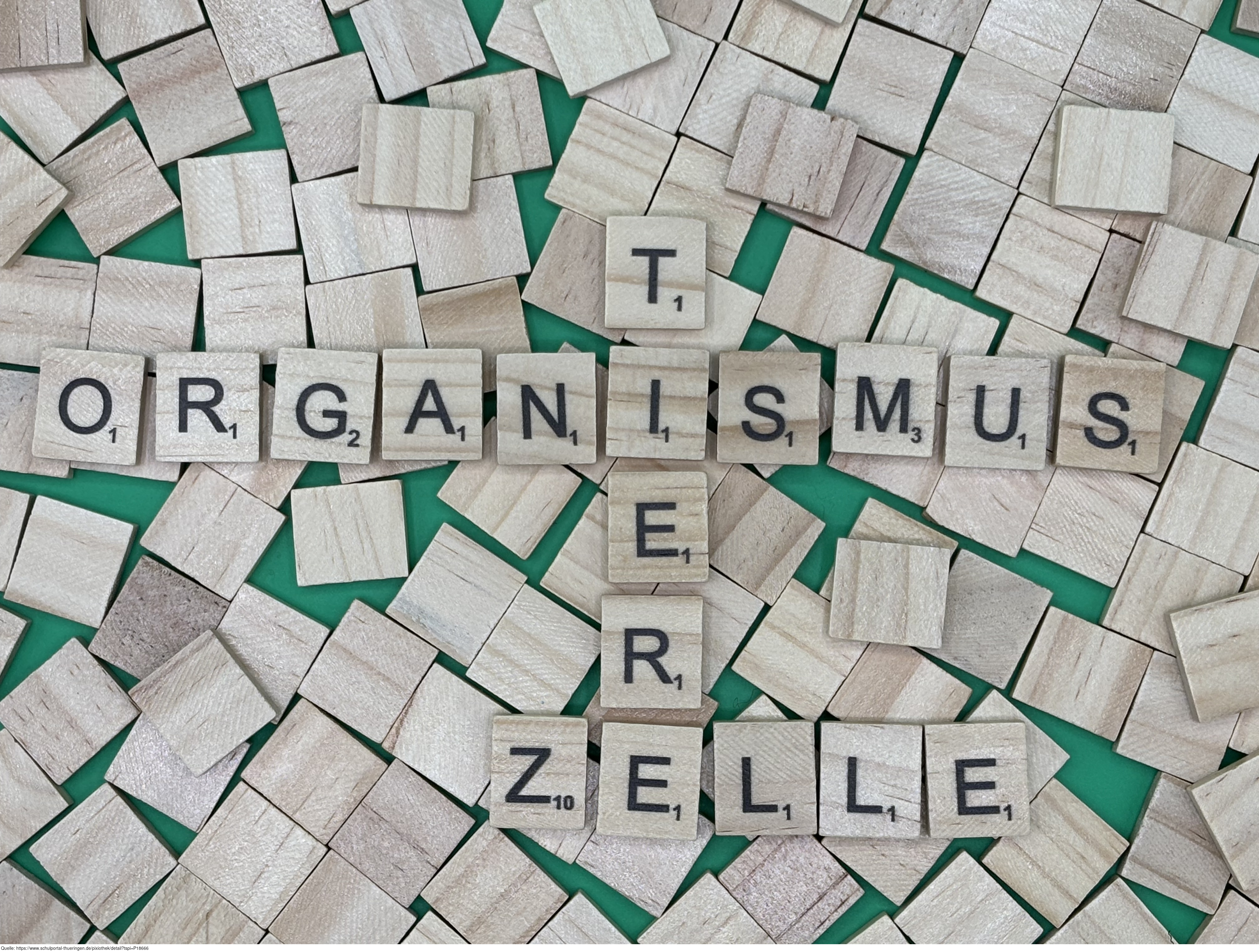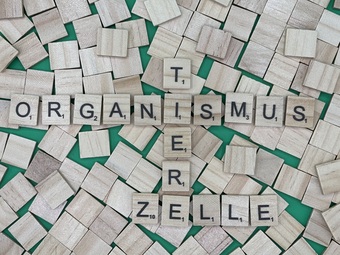 Aus Buchstaben wurden die Begriffe "Organismus", "Tiere" und "Zelle" gelegt. Es gelten die Nutzungsbedingungen der Mediothek und Pixiothek.
