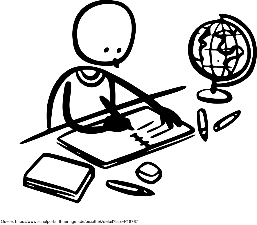 Die Zeichnung zeigt einen Schüler in geschlechtsneutraler Ansicht. Das Bild ist unter CC0 lizenziert und kann somit frei verwendet werden. Es ist neben weiteren Bildern auch hier zu finden: https://cocomaterial.com