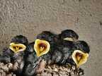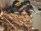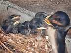Das Foto gehört zur Serie "Schwalbenfreundliches Haus". Es zeigt junge Rauchschwalben im Nest. Das Nest befindet sich in einer Scheune, die für Vögel und Fledermäuse einige offene Durchflugsmöglichkeiten bereithält. Es gelten die Nutzungsbedingungen der Mediothek und Pixiothek.