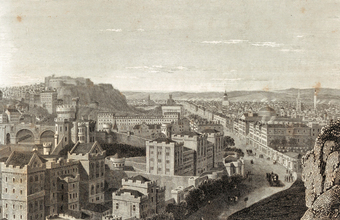 Die Abbildung zeigt die High Street oder Royal Mile in Edinburgh in einer historischen Ansicht. Das Bild stammt aus Band 1 von „Meyer's Universum oder Abbildung und Beschreibung des Sehenswerthesten und Merkwürdigsten der Natur und Kunst auf der ganzen Erde“, erschienen 1833. Das Digitalisat ist bei der Universitäts- und Landesbibliothek Düsseldorf unter https://nbn-resolving.org/urn:nbn:de:hbz:061:1-621229 abrufbar. Das Gesamtwerk wurde unter Public Domain Mark 1.0 Universell lizenziert, ist somit gemeinfrei und kann frei verwendet werden.