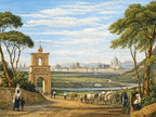Die Abbildung zeigt einen Blick über die Tiberbrücke auf die Engelsburg (Castel Sant'Angelo), die Peterskirche und den Vatikan in einer historischen Ansicht. Das Bild stammt aus Band 1 von „Meyer's Universum oder Abbildung und Beschreibung des Sehenswerthesten und Merkwürdigsten der Natur und Kunst auf der ganzen Erde“, erschienen 1833. Das Digitalisat ist bei der Universitäts- und Landesbibliothek Düsseldorf unter https://nbn-resolving.org/urn:nbn:de:hbz:061:1-621229 abrufbar. Das Gesamtwerk wurde unter Public Domain Mark 1.0 Universell lizenziert, ist somit gemeinfrei und kann frei verwendet werden. Diese Bildvariante wurde mittels KI (Copilot) nachbearbeitet und coloriert.