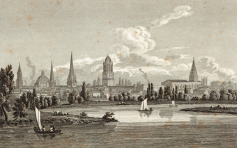 Die Abbildung zeigt einen Blick auf Oxford in einer historischen Ansicht. Das Bild stammt aus Band 1 von „Meyer's Universum oder Abbildung und Beschreibung des Sehenswerthesten und Merkwürdigsten der Natur und Kunst auf der ganzen Erde“, erschienen 1833. Das Digitalisat ist bei der Universitäts- und Landesbibliothek Düsseldorf unter https://nbn-resolving.org/urn:nbn:de:hbz:061:1-621229 abrufbar. Das Gesamtwerk wurde unter Public Domain Mark 1.0 Universell lizenziert, ist somit gemeinfrei und kann frei verwendet werden.