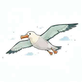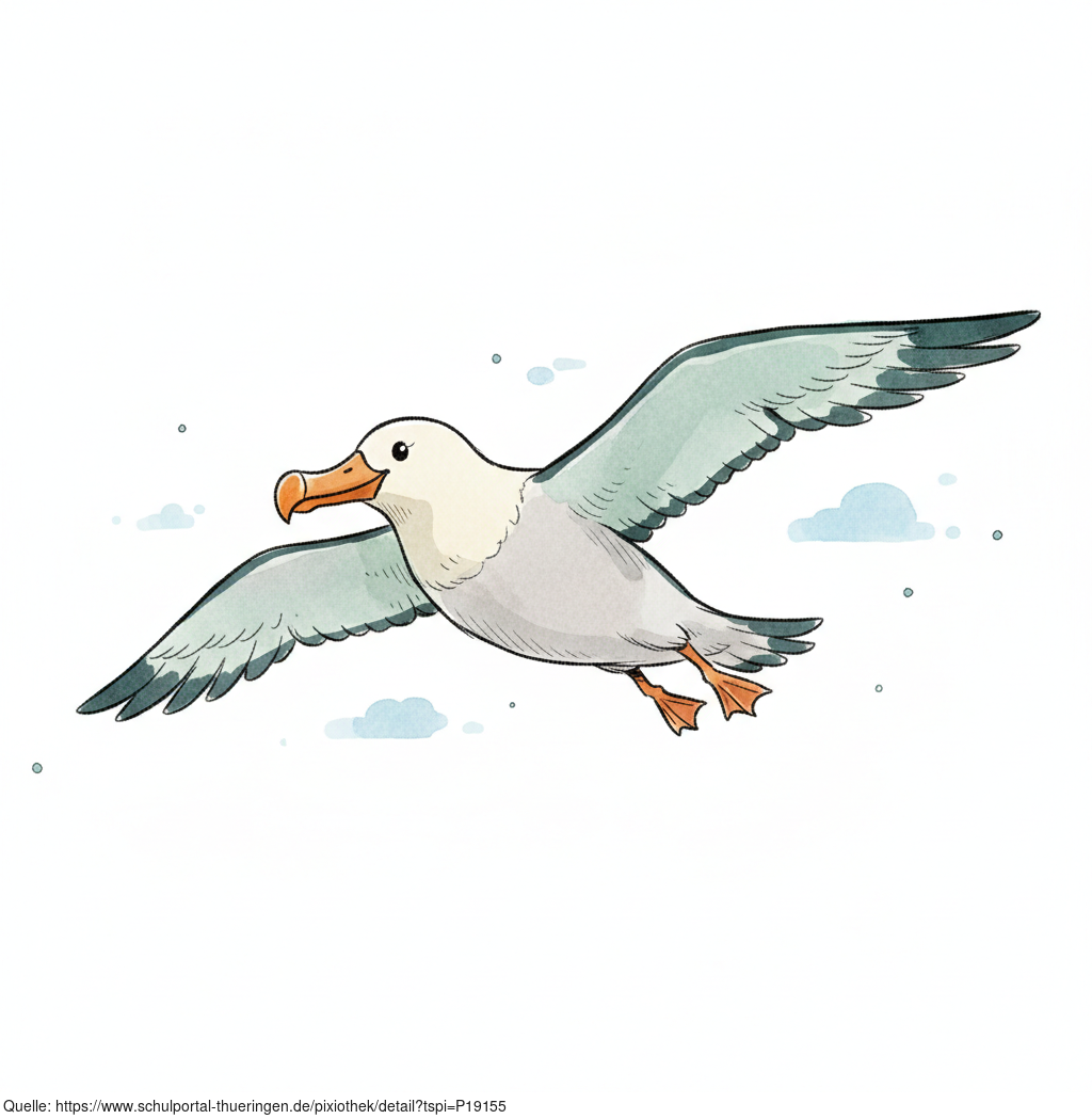 Das Bild zeigt einen gezeichneten Albatros. Das Bild wurde mittels einer KI (Gemini) erstellt und ist unter CC0 lizenziert. Weitere Bilder aus Herrn Emrich-Försters Bild-Archiv findet man hier: https://pix.foerster.rocks/