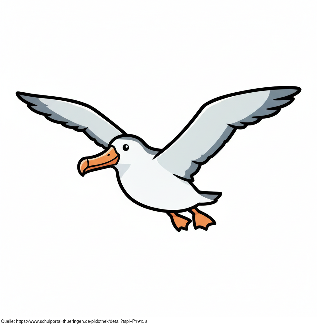 Das Bild zeigt einen gezeichneten Albatros. Das Bild wurde mittels einer KI (Gemini) erstellt und ist unter CC0 lizenziert. Weitere Bilder aus Herrn Emrich-Försters Bild-Archiv findet man hier: https://pix.foerster.rocks/