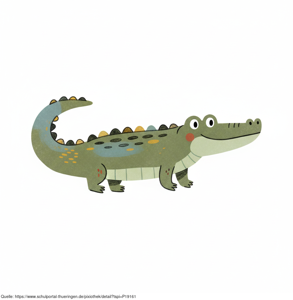 Das Bild zeigt einen gezeichneten Alligator. Das Bild wurde mittels einer KI (Gemini) erstellt und ist unter CC0 lizenziert. Weitere Bilder aus Herrn Emrich-Försters Bild-Archiv findet man hier: https://pix.foerster.rocks/