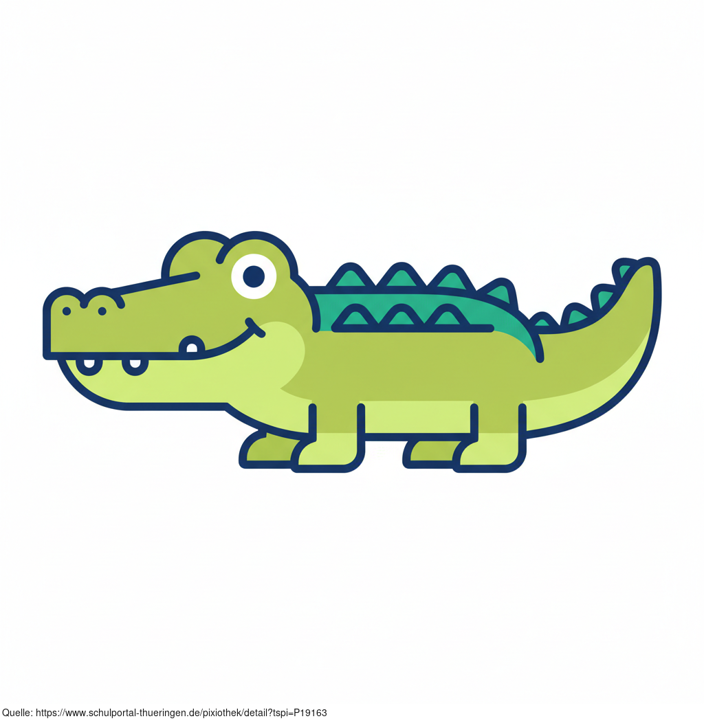 Das Bild zeigt einen gezeichneten Alligator. Das Bild wurde mittels einer KI (Gemini) erstellt und ist unter CC0 lizenziert. Weitere Bilder aus Herrn Emrich-Försters Bild-Archiv findet man hier: https://pix.foerster.rocks/