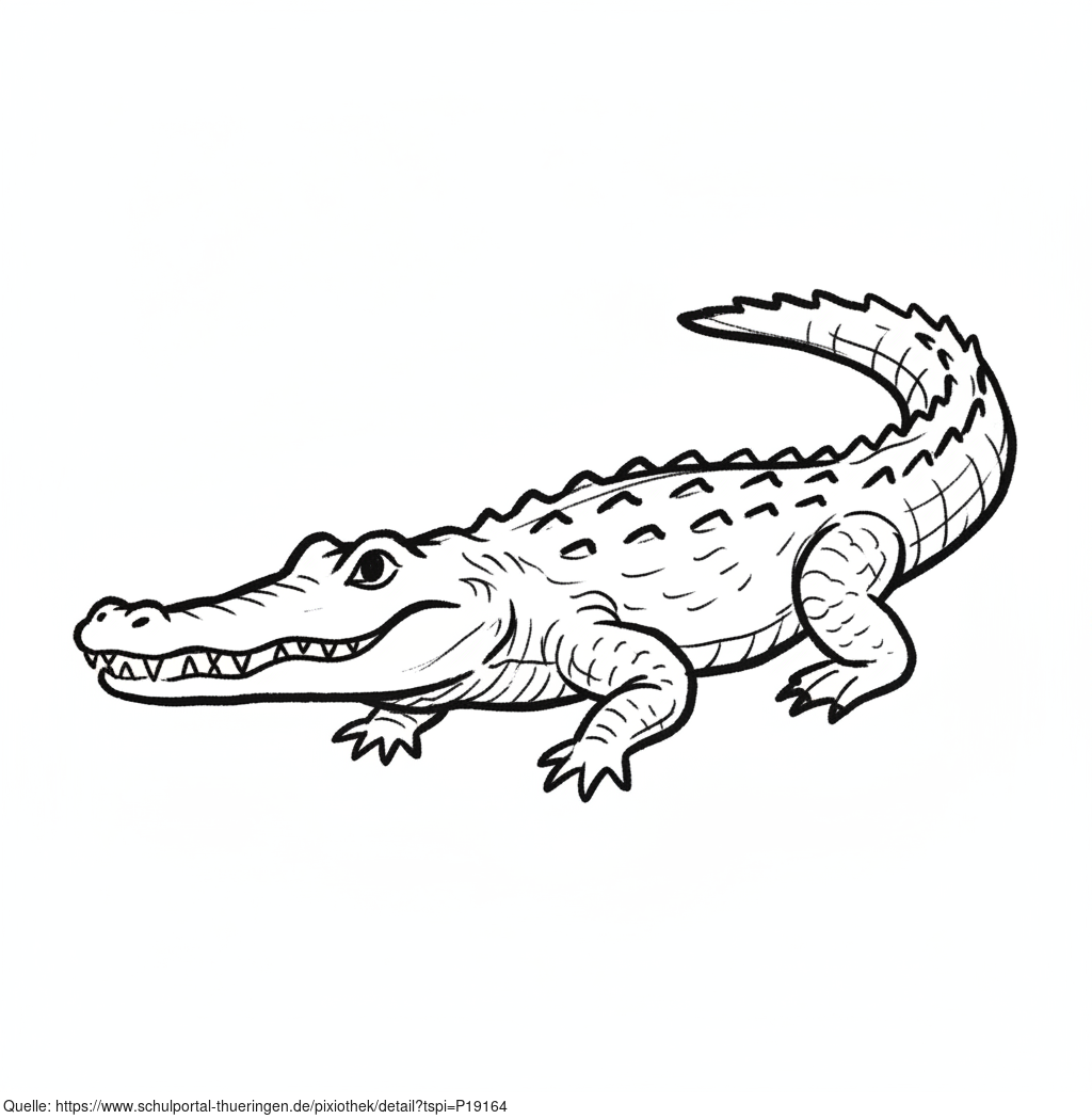 Das Bild zeigt einen gezeichneten Alligator. Das Bild wurde mittels einer KI (Gemini) erstellt und ist unter CC0 lizenziert. Weitere Bilder aus Herrn Emrich-Försters Bild-Archiv findet man hier: https://pix.foerster.rocks/