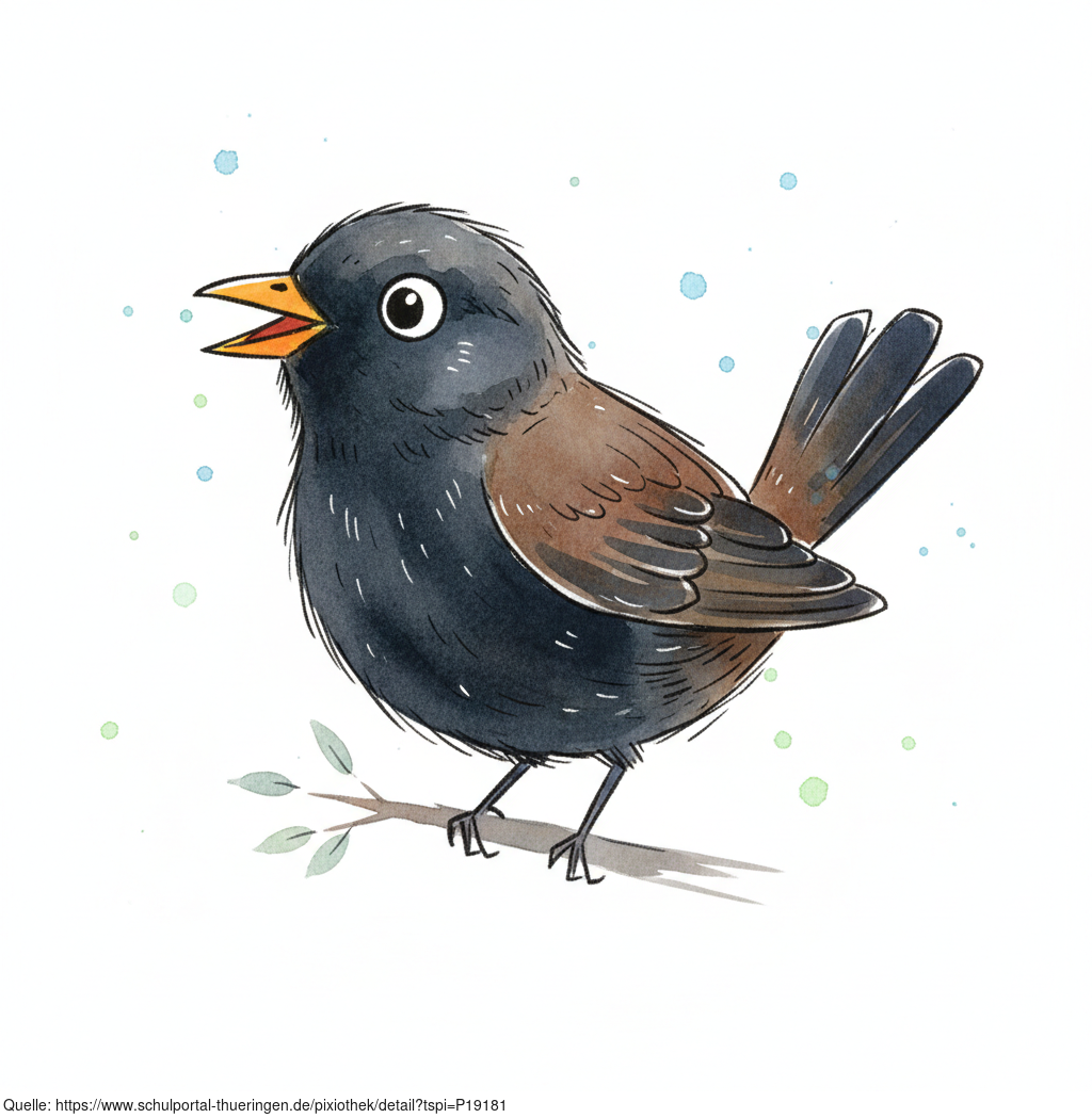 Das Bild zeigt eine gezeichnete Amsel. Das Bild wurde mittels einer KI (Gemini) erstellt und ist unter CC0 lizenziert. Weitere Bilder aus Herrn Emrich-Försters Bild-Archiv findet man hier: https://pix.foerster.rocks/