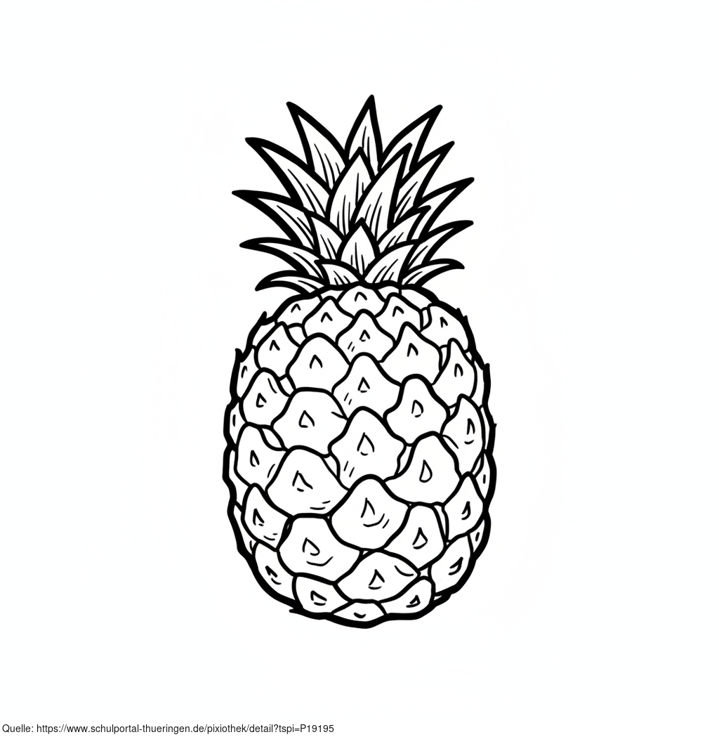 Das Bild zeigt eine gezeichnete Ananas. Das Bild wurde mittels einer KI (Gemini) erstellt und ist unter CC0 lizenziert. Weitere Bilder aus Herrn Emrich-Försters Bild-Archiv findet man hier: https://pix.foerster.rocks​​​​​​​​​/