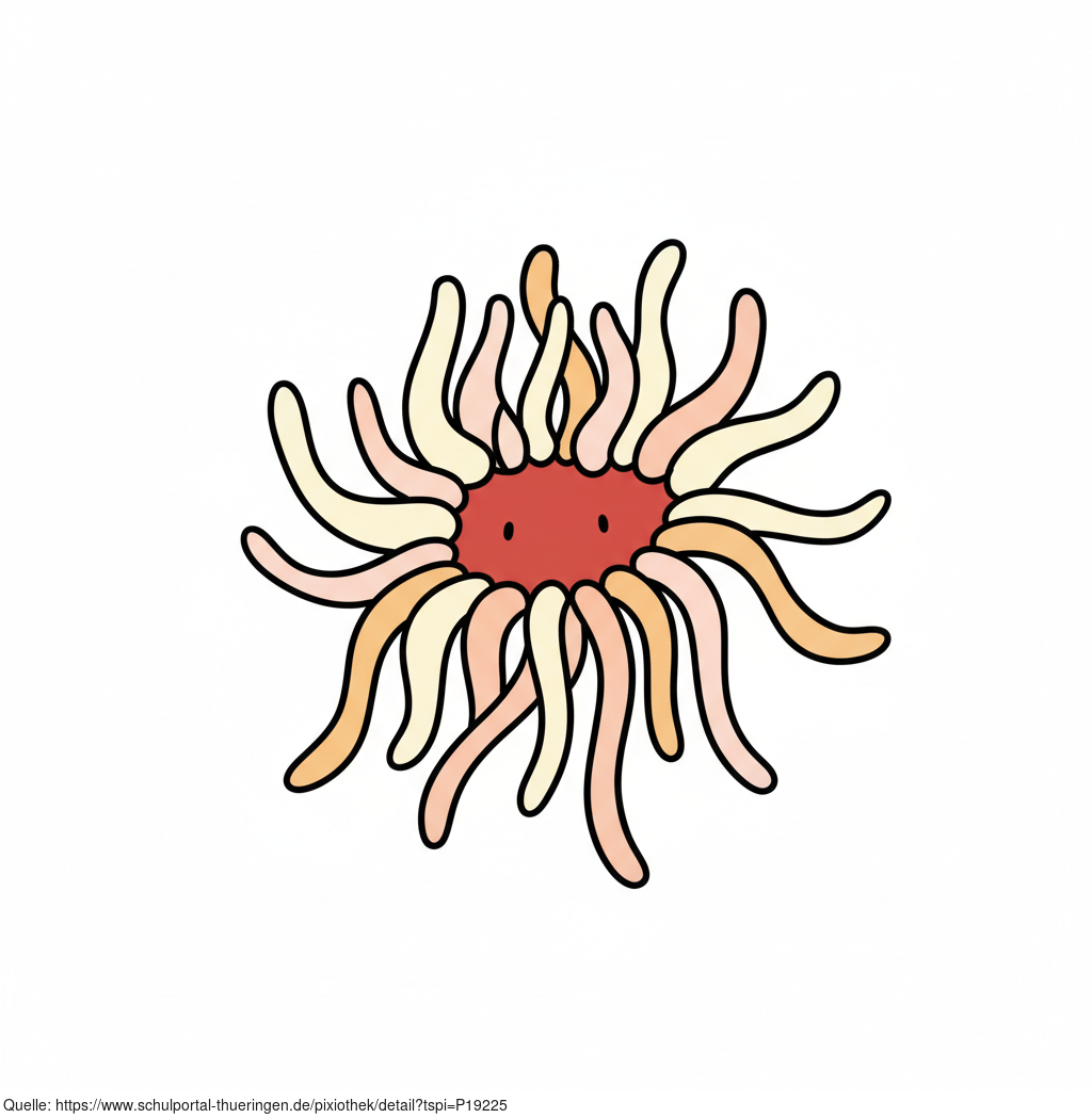 Das Bild zeigt eine gezeichnete Anemone, Seeanemone. Das Bild wurde mittels einer KI (Gemini) erstellt und ist unter CC0 lizenziert. Weitere Bilder aus Herrn Emrich-Försters Bild-Archiv findet man hier: https://pix.foerster.rocks​​​​​​​​​​​/