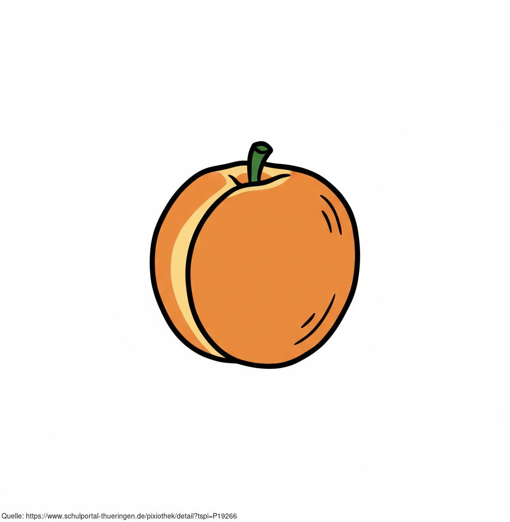 Das Bild zeigt eine gezeichnete Aprikose. Das Bild wurde mittels einer KI (Gemini) erstellt und ist unter CC0 lizenziert. Weitere Bilder aus Herrn Emrich-Försters Bild-Archiv findet man hier: https://pix.foerster.rocks/