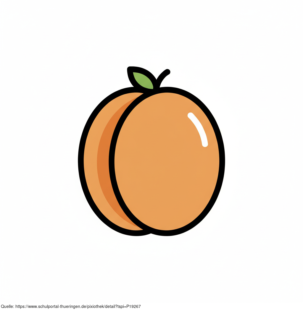 Das Bild zeigt eine gezeichnete Aprikose. Das Bild wurde mittels einer KI (Gemini) erstellt und ist unter CC0 lizenziert. Weitere Bilder aus Herrn Emrich-Försters Bild-Archiv findet man hier: https://pix.foerster.rocks/