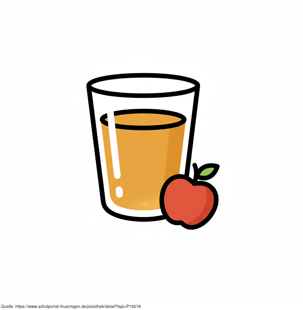 Das Bild zeigt ein gezeichnetes Motiv zum Begriff Apfelsaft. Das Bild wurde mittels einer KI (Gemini) erstellt und ist unter CC0 lizenziert. Weitere Bilder aus Herrn Emrich-Försters Bild-Archiv findet man hier: https://pix.foerster.rocks/
