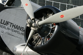 Das Foto gehört zu einer Serie mit Fotos der Junkers Ju 52 (Spitzname Tante Ju) mit dem Namen "Berlin-Tempelhof" auf dem Flughafengelände Lübeck. Das Flugzeug ist ein restauriertes Produkt der Junkers Flugzeugwerk AG Dessau aus dem Jahr 1936.