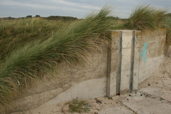 Spiekeroog: Gemauerte Steinwand vor Dünen