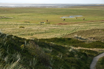 Abgebildet sind die Salzwiesen bei Ebbe.