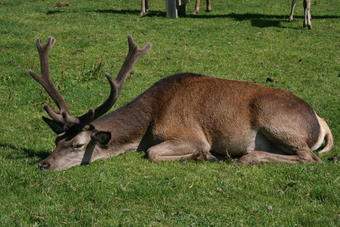 Abgebildet ist ein Hirsch auf der Insel Svanøy .