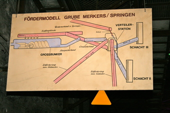 Das Foto gehört zur Serie "Salzbergwerk". Es zeigt ein Schaubild zum Fördermodell im Erlebnisbergwerk Merkers. Es gelten die Nutzungsbedingungen der Mediothek und Pixiothek.