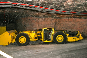 Das Foto gehört zur Serie "Salzbergwerk". Es zeigt einen Fahrschaufellader. Es gelten die Nutzungsbedingungen der Mediothek und Pixiothek.