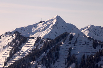 Das Foto gehört zur Serie "Lawinenschutz" mit Fotos aus den Gegenden Walmendinger Horn (Österreich, Kleinwalsertal) und Fellhorn (Deutschland). Es zeigt die Stützverbauung an einem Berghang. Solche Lawinenverbauungen schützen Siedlungen, Verkehrswege und Sportgebiete vor Lawinen. Es gelten die Nutzungsbedingungen der Mediothek und Pixiothek.