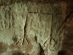 Abgebildet ist eine Bodenvertiefung in der Grotte, die vermutlich als Feuerstelle diente.
